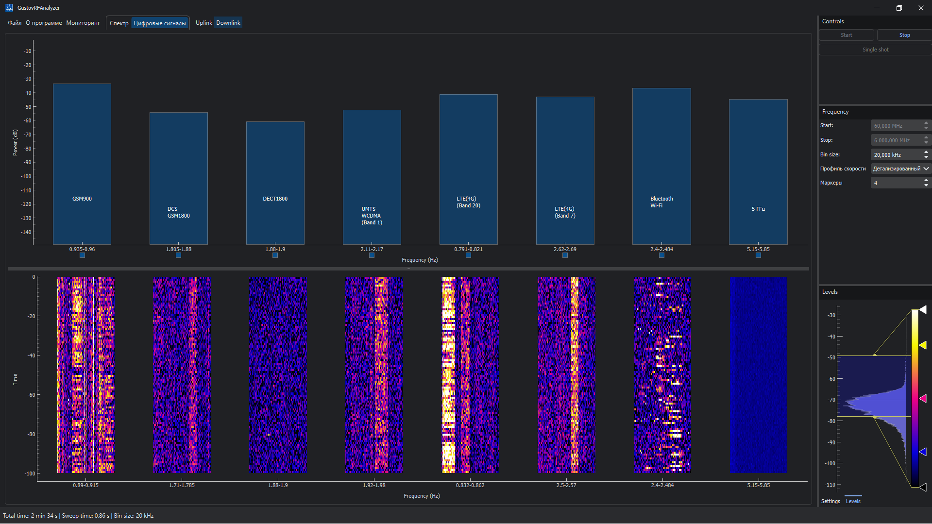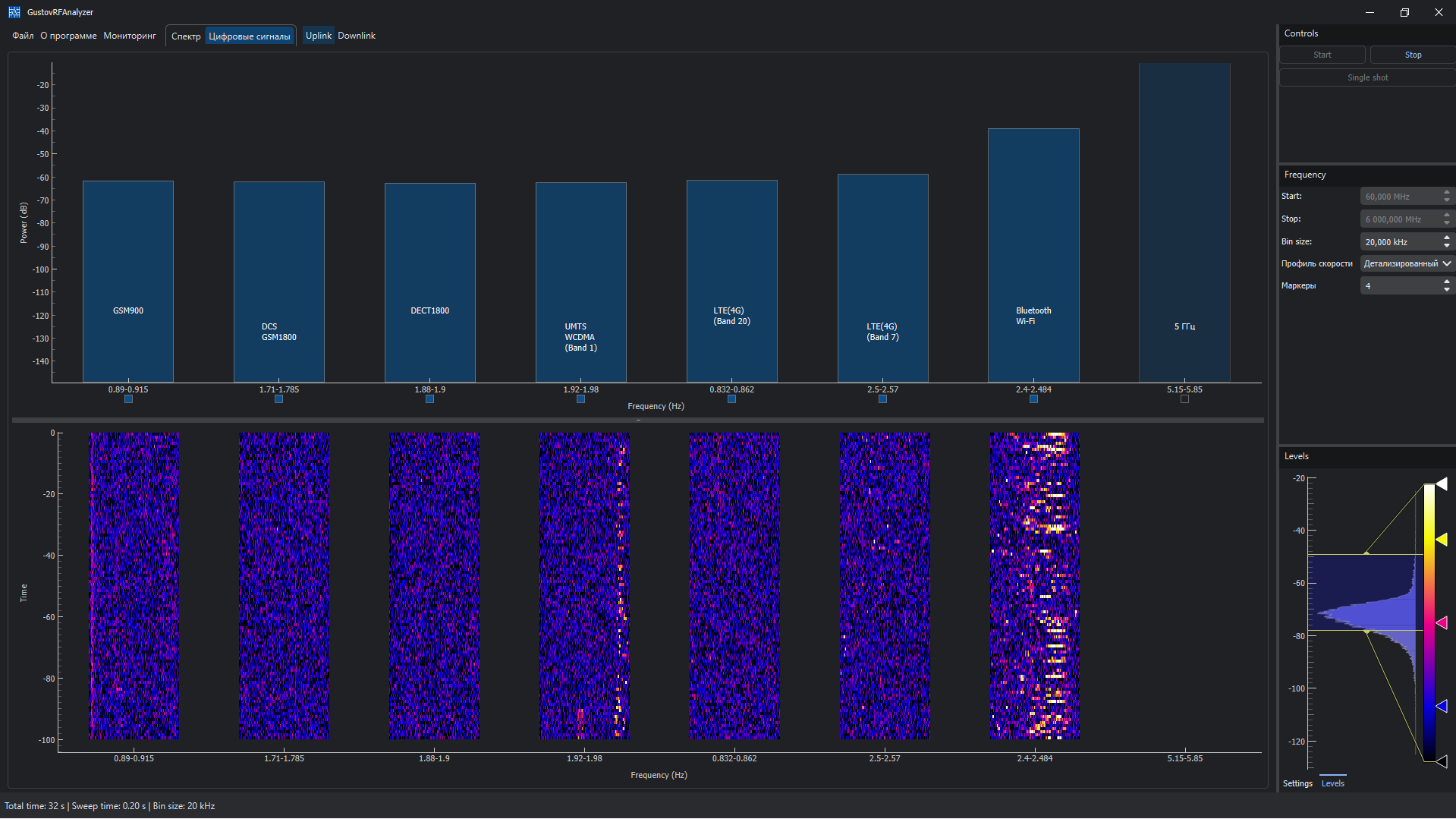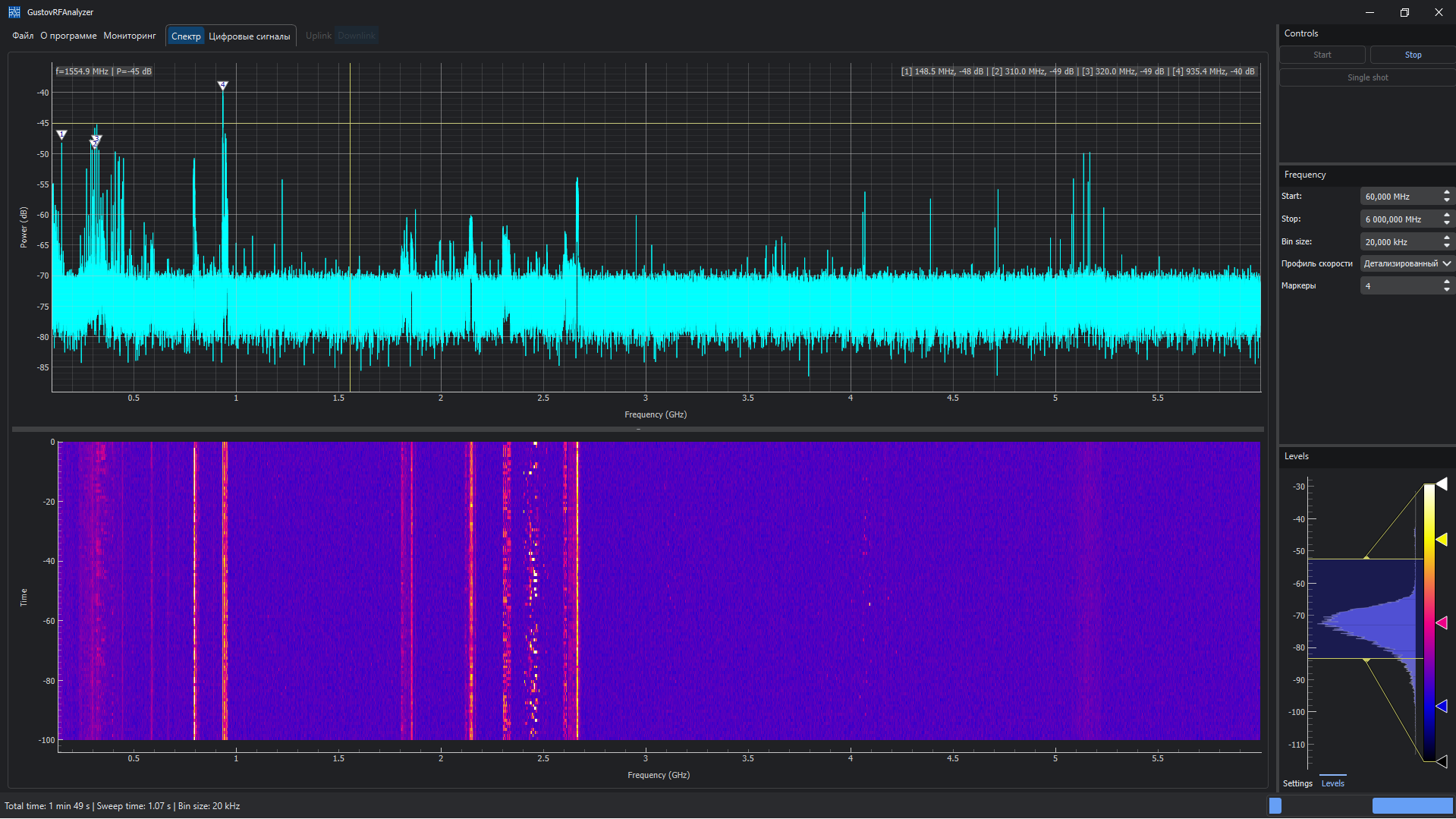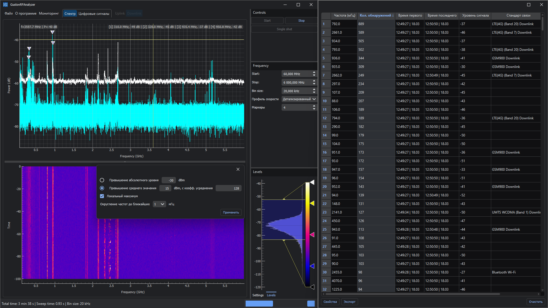 GustovRFAnalyzer — специализированное программное обеспечение для контроля радиообстановки, обнаружения радиопередающих устройств и анализа спектра в широком диапазоне частот.