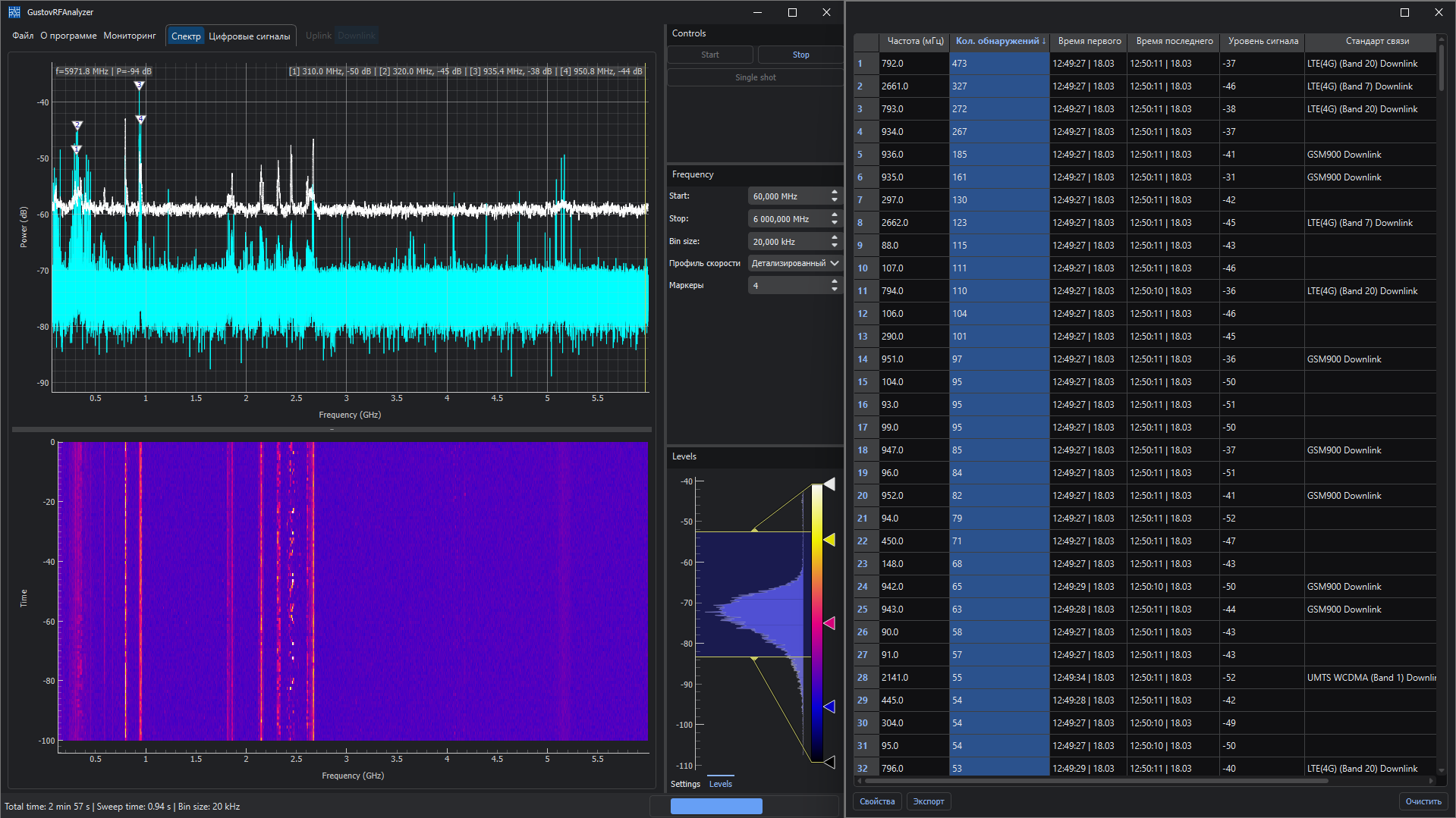GustovRFAnalyzer — специализированное программное обеспечение для контроля радиообстановки, обнаружения радиопередающих устройств и анализа спектра в широком диапазоне частот.