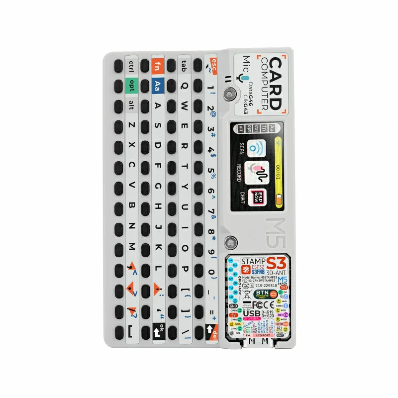 Cardputer — это портативный компьютер размером с карту, который идеально подходит для инженеров. Сердце Cardputer — M5StampS3, мини-плата разработки на базе чипа ESP32-S3. Cardputer оснащен мощным двухъядерным процессором, поддерживает функциональность Wi-Fi и интегрирует различные периферийные устройства и датчики, что делает его идеальным для быстрой функциональной проверки, промышленного управления и систем домашней автоматизации.
